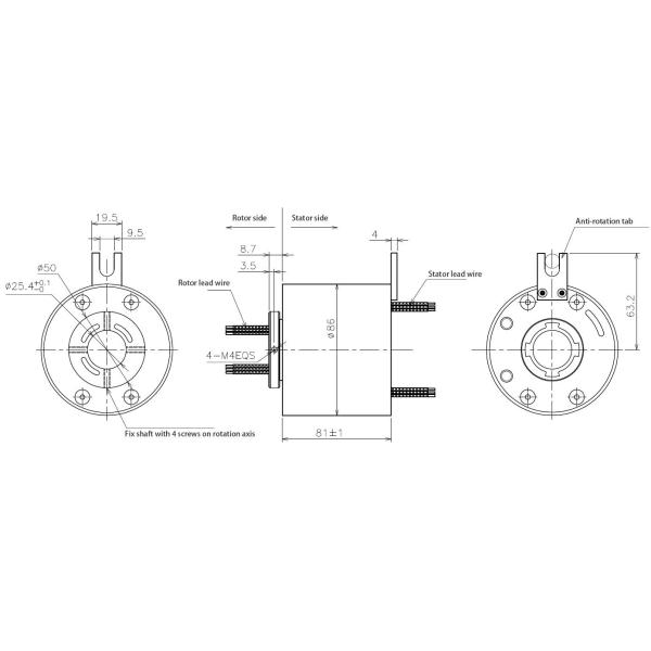 This model belongs to CENO’s Ethernet slip ring series.Its data rate up to 100Mbps.During transferring signal,it also can pass power 10Amp without any interference.However,from its construction,it may also belong to through hole slipring ECN series due to it has 1 inch through hole.