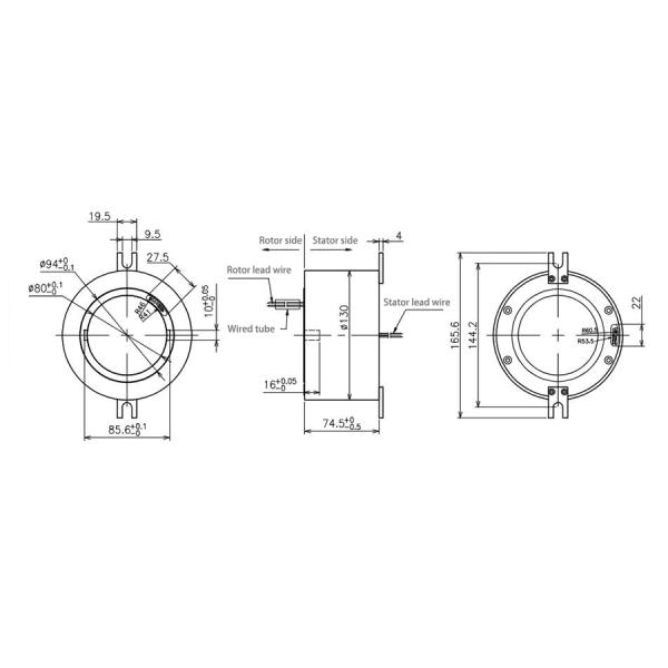 Slip ring with low temperature -70°C apply to industry through hole Ø80mm