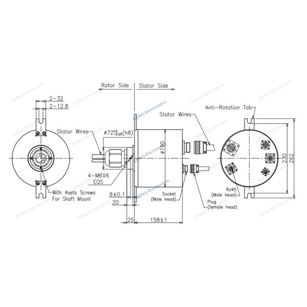 ECN000-09P-12S is CENO new low temperature slip rings which combine power signals with 10 circuits Ethernet suits for the low temperature environment. CENO have many kinds of function slip rings, low temperature slip ring is one of them specialized for the construction machinery specially adjusted for harsh working conditions. Features stable performance, super ageing resistance and the temperature resistance performance can meet the demands of working in the Siberian cold area. More information about how CENO slip ring can fit your specific application please contact us.